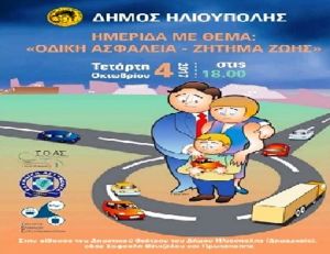 «Οδική Ασφάλεια - Ζήτημα Ζωής» Η οποία θα πραγματοποιηθεί την Τετάρτη 4 Οκτωβρίου 2017 και ώρα 18.00 στην αίθουσα του ∆ημοτικού θεάτρου του ∆ήμου Ηλιούπολης (∆ημαρχείο), οδός Σοφοκλή Βενιζέλου και Πρωτόπαππα.