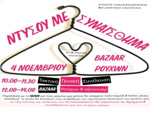 Τέλος, όσοι επιθυμούν να βοηθήσουν χαρίζοντας στο σύλλογο ρούχα, παπούτσια και αξεσουάρ που δεν χρειάζονται, παρακαλούνται να τα φέρουν στο σχολείο μέχρι και την Πέμπτη 2 Νοεμβρίου.