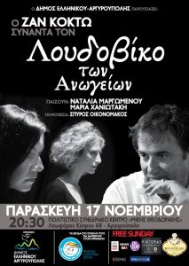 Στις 17 Νοεμβρίου στο πολιτιστικό κέντρο "Μίκης Θεοδωράκης" έρχεται η σειρά της πόλης μας, να φιλοξενήσει την εξαιρετική θεατρική παράσταση, "Ο Ζαν Κοκτώ συναντά τον Λουδοβίκο των Ανωγείων!" Ο Λουδοβίκος των Ανωγείων, μαζί με τις ηθοποιούς Ναταλία Μαργωμένου και Μαρία Χανιωτάκη θα παρουσιάσουν με ένα μοναδικό τρόπο τα κείμενα του σπουδαίου δημιουργού Ζαν Κοκτώ