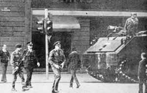 Ας πάρουμε, όμως, ένα δείγμα, για το τι πραγματικά συνέβη με τους «έξω» από το Πολυτεχνείο: To μεσημέρι της 18ης Νοέμβρη 1973, ο ταγματάρχης Ντερτιλής (αυτός με τον οποίο φωτογραφιζόταν πριν μερικούς μήνες ο Μιχαλολιάκος κρατώντας του σεβάσμια το χέρι) βρισκόταν με το υπηρεσιακό του τζιπ έξω από την κατεστραμμένη πύλη του Πολυτεχνείου.