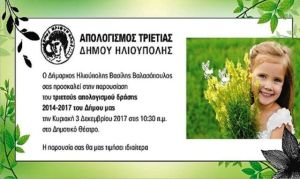 ΑΠΟΛΟΓΙΣΜΟΣ ΤΡΙΕΤΙΑΣ ΔΗΜΟΥ ΗΛΙΟΥΠΟΛΗΣ Εντός των τειχών 27 Νοεμβρίου 2017 Ο Δήμαρχος Ηλιούπολης Βασίλης Βαλασόπουλος σας προσκαλεί στην παρουσίαση του τριετούς απολογισμού δράσης 2014-2017 του Δήμου μας. Δήμαρχος Ηλιούπολης Βασίλης Βαλασόπουλος Ηλιούπολη Ηλιούπολη για όλους www.ilioupoligiaolous.gr ilioupoli Απολογισμός Προβλήθηκε 790 φορές Δείτε Επίσης: Εντός των τειχών Δείτε τα Όλα ΗΛΙΟΥΠΟΛΗ - ΠΑΝΑΡΓΕΙΑΚΟΣ 1η αγωνιστική Super League 2 (play out) 10 Φεβρουαρίου 2026 15.02.2025 - ώρα 03.00 μ.μ. Προγραμματισμένες διακοπές ρεύματος (Ηλιούπολη - 11.02.2026) 08 Φεβρουαρίου 2026 ΕΝΗΜΕΡΩΣΗ ΑΠΟ ΔΕΔΔΗΕ Ισοπαλιά για τον ΧΑΡΑΥΓΙΑΚΟ και για τον ΦΩΣΤΗΡΑ ΗΛΙΟΥΠΟΛΗΣ 07 Φεβρουαρίου 2026 ΚΥΡΙΑΚΗ 08.02.2026 ΚΑΙ ΩΡΑ 03.00 Μ.Μ. ΙΣΟΠΑΛΙΑ ΓΙΑ ΤΗΝ ΔΙΑΝΑ 07 Φεβρουαρίου 2026 ΣΑΒΒΑΤΟ 07.02.2026 ΚΑΙ ΩΡΑ 03.00 Μ.Μ. 19η αγωνιστική για ΔΙΑΝΑ, ΧΑΡΑΥΓΙΑΚΟ και 18η αγωνιστική για ΦΩΣΤΗΡΑ ΗΛΙΟΥΠΟΛΗΣ 07 Φεβρουαρίου 2026 ΣΑΒΒΑΤΟ 7 ΚΑΙ ΚΥΡΙΑΚΗ 8 ΦΕΒΡΟΥΑΡΙΟΥ 2026 Σύλλογος Εκπαιδευτικών Π.Ε. Ηλιούπολης "Μ. ΠΑΠΑΜΑΥΡΟΣ'': ΑΝΑΦΟΡΙΚΑ ΜΕ ΤΑ ΕΡΓΑΤΙΚΑ ΑΤΥΧΗΜΑΤΑ ΠΟΥ ΓΙΝΟΝΤΑΙ ΣΤΑ ΣΧΟΛΕΙΑ ΜΑΣ 06 Φεβρουαρίου 2026 Πριν λίγες μέρες συνέβη ένα εργατικό ατύχημα σε συναδέλφισσα που εργάζεται στο 3ο ΔΣ Ηλιούπολης Συνελήφθη 20χρονος για 13 ληστείες σε βάρος ανηλίκων στην Αττική - Αναζητούνται 2 συνεργοί του 01 Φεβρουαρίου 2026 Η συμμορία δρούσε στις περιοχές των Αγίων Αναργύρων, της Ηλιούπολης, του Ελληνικού, του Αγίου Δημητρίου, της Αργυρούπολης, του Ιλίου και των Αχαρνών Ισοπαλία για ΔΙΑΝΑ, ΧΑΡΑΥΓΙΑΚΟ και ΦΩΣΤΗΡΑ ΗΛΙΟΥΠΟΛΗΣ 01 Φεβρουαρίου 2026 3 ΙΣΟΠΑΛΙΕΣ