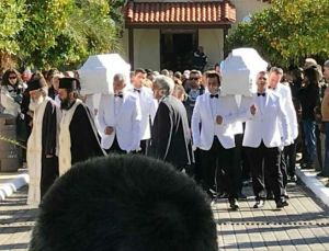 Αμίλητη, υποβασταζόμενη η μητέρα τους ακολούθησε τα φέρετρα των παιδιών της. Συγκλονιστική η εικόνα των συμμαθητών του Βασίλη και του Σταύρου που με ένα λουλούδι στο χέρι ήταν εκεί για το τελευταίο αντίο.