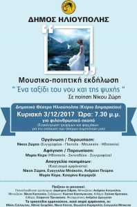 Μετά από κάθε ποίημα του Νίκου Ζώρη που θα απαγγέλλεται, ακολουθεί ένα ωραίο ελληνικό τραγούδι, το οποίο ταιριάζει εννοιολογικά με το αντίστοιχο ποίημα.