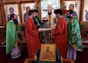Το ιερό αναλόγιο πλαισίωσαν ο πρωτοψάλτης του ναού Αγίας Σοφίας Λος Άντζελες, Μάριος Λαζαρίδης και ο Λαμπαδάριος του ναού Ευαγγελιστρίας Ιλίου, Σπυρίδων Παπαγεωργίου, επικουρούμενοι από τον ασκούντα χρέη πρωτοψάλτου στο Ναό μας, Δημήτριο Μπούκα και τους συνεργάτες του