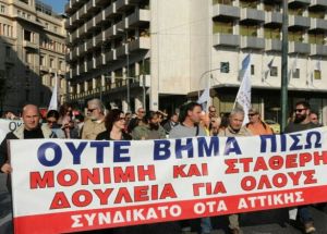 «Η κυβέρνηση ΣΥΡΙΖΑ – ΑΝΕΛ ψήφισε άρθρο στο πολυνομοσχέδιο όπου το αίτημα μας για μετατροπή των συμβάσεων μας από ορισμένου χρόνου σε αορίστου που οδήγησε στους μεγάλους αγώνες του καλοκαιριού, που υιοθετήθηκε από δεκάδες σωματεία και κινητοποίησε χιλιάδες εργαζόμενους απαγορεύεται δια νόμου!