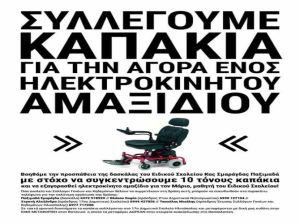 Βοηθάμε την προσπάθεια της δασκάλας του Ειδικού Σχολείου κας Σμαράγδας Παξιμαδά με στόχο να συγκεντρώσουμε 10 τόνους καπάκια και να εξαγορασθεί ηλεκτροκίνητο αμαξίδιο, για τον Μάριο μαθητή του Ειδικού Σχολείου!