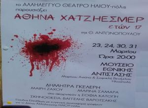 Η παράσταση θα παρουσιαστεί στο Μουσείο Εθνικής Αντίστασης στην Ηλιούπολη στις 23,24,30 & 31 Μαρτίου στις 20:00.