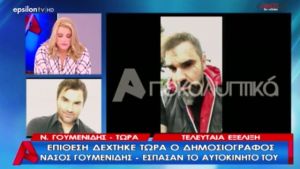 Επίθεση με σφυρί από δύο αγνώστους δέχτηκε πριν από λίγη ώρα ο δημοσιογράφος Νάσος Γουμενίδης.