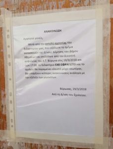Το σχολείο, όπως είναι γνωστό, κρίθηκε πρόσφατα από την πολεοδομία δομικά επικίνδυνο και κλήθηκε η αστυνομία να το εκκενώσει άμεσα, πράγμα το οποίο και έγινε, με αποτέλεσμα να βρεθούν 230 παιδιά σε αδυναμία να συνεχίσουν την σχολική τους εκπαίδευση και οι γονείς να βρεθούν σε απόγνωση.