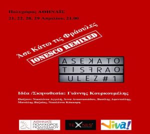 Η περφόρμανς «Άσε κάτω τις φράουλες», σε σύνθεση κειμένων και σκηνοθεσία του Γιάννη Κουρκουμέλη, βασίζεται σε μια ελεύθερη απόδοση κειμένων του Ευγένιου Ιονέσκο ιδωμένη με μια αφαιρετικά συμπυκνωμένη ματιά: Τα λιγοστά σκηνικά, ο ασαφής χώρος και χρόνος, οι απροσδιόριστες ταυτότητες των ηρώων, ο λιτός επαναληπτικός λόγος έρχονται σε αντιπαράθεση -και συνάμα σε απόλυτη συμφωνία- με τα πυκνά νοήματα και τους διαχρονικούς προβληματισμούς που θέτει ο κυριότερος εκπρόσωπος του θεάτρου του παραλόγου.