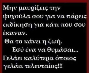Αξιοπρέπεια και το κεφάλι ψηλά νικητή μου, η ζωή η ίδια θα απαντήσει στην αδικία που σου έκαναν.