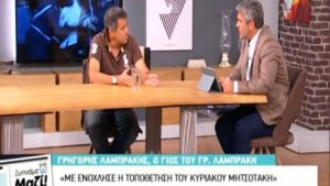 Ο γιος του Γρηγόρη Λαμπράκη, Γρηγόρης, φιλοξενήθηκε στην εκπομπή "Ξυπνάμε Μαζί" στο Epsilon και μεταξύ άλλων αναφέρθηκε στα όσα είπε ο Κυριάκος Μητσοτάκης: "Θέλω να πω για αυτό που είπε ο Πρόεδρος της ΝΔ ότι ο 17χρονος δεν ασχολείται με το τι έγινε το '63, με αυτή τη λογική δεν πρέπει να ασχολείται ούτε με τον Μπακογιάννη και ποιος τον σκότωσε, ούτε όταν παίρνει άδειες και βγαίνει έξω ο δολοφόνος. Δηλαδή θα τα ισοπεδώσουμε όλα. Με ενόχλησε αυτή η δήλωση γιατί δεν ήταν σωστή. Μας ενδιαφέρει και το μέλλον, ο 17χρονος ενδιαφέρεται και πολύ μάλιστα".