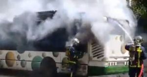Τα αίτια της φωτιάς παραμένουν αδιευκρίνιστα. Πρόκειται για πράσινο λεωφορείο, που κινείται με φυσικό αέριο. (video εδώ)
