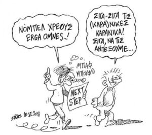 Αν αυτό δεν είναι εθνικό πρόβλημα, δεν ξέρω τι άλλο μπορεί να είναι. (Επ’ αυτών κορωνίς ο Τσίπρας που τώρα βρίσκει το ΔΝΤ μια συμπαθητική Ουρσουλίνα, βεβαιώνει ότι οι συντάξεις θα κοπούν όσο αίμα κι αν χυθεί, και ότι ο ίδιος θα πήγαινε μάρτυρας υπεράσπισης του κ. Ανδρέα Γεωργίου) – είναι να κάνεις τον σταυρό σου με κίνδυνο να σου ρίξει φωτιά και να σε κάψει ο Πανάγαθος...