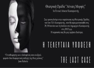 Η νέα Θεατρική Παράσταση της Θεατρικής Ομάδας «Αέναες Μορφές», του 1ου ΓΕΛ Καισαριανής, έρχεται στις 29 και 30 Ιουνίου και την 1η Ιουλίου στο Δημαρχείο Καισαριανής.