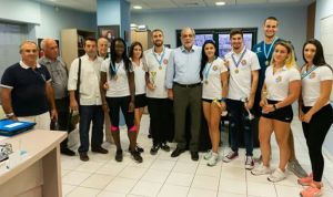 Τα συνεχάρη για τις μεγάλες τους επιτυχίες και μίλησε με κάθε μία αθλήτρια και κάθε ένα αθλητή για το αγώνισμα τους, γνώστης ο ίδιος καθότι υπήρξε αθλητής,μα και για τις σπουδές τους. Τους ευχήθηκε καλή περαιτέρω πορεία στον αθλητισμό,μα και στη εν γένει προσωπική τους ζωή.