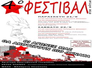 σας προσκαλούν στο 4ο Πολιτικό Πολιτιστικό Φεστιβάλ στα νότια που θα γίνει την Παρασκευή 21 και το Σάββατο 22 Σεπτέμβρη στο Πάρκο Αγ. Νικολάου στην Ηλιούπολη (800μ από σταθμό μετρό Ηλιούπολη)
