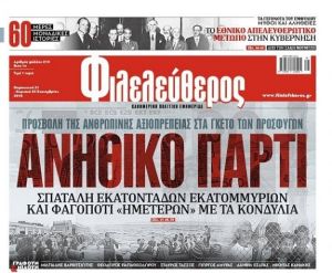 Η εφημερίδα εκτιμά ότι με βάση τα πρόσωπα που αναζητούνται από την αστυνομία, η μήνυση Καμμένου αφορά το πρωτοσέλιδο της Παρασκευής με τίτλο: Ανήθικο πάρτι.