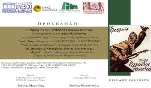 την Δευτέρα 22 Οκτωβρίου 2018 & ώρα 8:00 μ.μ. στο Μουσείο Εθνικής Αντίστασης Δήμου Ηλιούπολης , Σοφοκλή Βενιζέλου & Μαρίνου Αντύπα)
