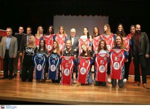 Ακολούθησε η παρουσία των αθλητριών με την Πόλα Κίτσου να δίνει και τις αγωνιστικές φανέλες στις αθλήτριες.