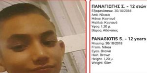 Συναγερμός έχει σημάνει στις Αρχές για την εξαφάνιση του 12χρονου Παναγιώτη Σ. από τη Νίκαια την Τρίτη (30/10).