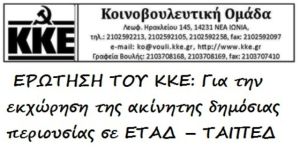 Θέμα: Για την εκχώρηση της ακίνητης δημόσιας περιουσίας σε ΕΤΑΔ-ΤΑΙΠΕΔ.
