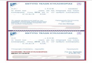 Αναρτήθηκαν σήμερα στο TAXISnet τα ποσά των τελών κυκλοφορίας για το 2019.