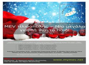 Το MEV Ηλιούπολης διοργανώνει για τρίτη χρονιά ( μετά την τεράστια συμμετοχή των σχολείων τα Χριστούγεννα των 2 προηγούμενων ετών ) μια Μεγάλη Γιορτή για το Παιδί .
