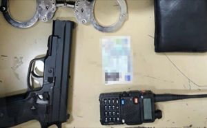 Κατά την διάρκεια της καταδίωξης ένας αστυνομικός κατάφερε και απέσπασε το τσαντάκι του 28χρονου το οποίο περιείχε ένα αεροβόλο όπλο με μεταλλικά σφαιρίδια, μια αληθινή αστυνομική ταυτότητα που ανήκει σε αστυφύλακα ο οποίος είχε δηλώσει την απώλεια της το 2016, χειροπέδες και έναν ασύρματο I-Com ο οποίος ήταν ρυθμισμένος στη συχνότητα του καναλιού του κέντρου της Ασφάλειας Αθηνών.