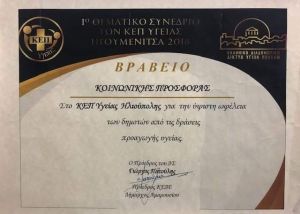 Μέσα στα πρώτα πέντε βραβεία από τους 98 Δήμους της Ελλάδας που διαθέτουν ΚΕΠ Υγείας ήταν ο Δήμος Ηλιούπολης που βραβεύτηκε για την αρτιότητα και την συνολική του δράση από το Ελληνικό Διαδημοτικό Δίκτυο Υγειών Πόλεων.