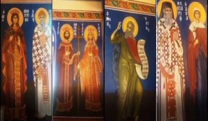 Στην τοιχογραφία απεικονίζονται οι πολιούχοι άγιοι, όλων των εκκλησιών της Ηλιούπολης.