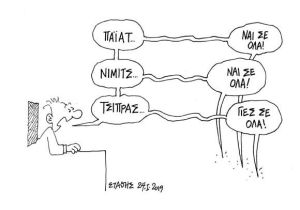 Πάντως, όπως λέμε και στον Βορειοανατολικό Πύργο Ηλείας, «αν δεν ταιριάζαμε, δεν θα συμπεθεριάζαμε». Είδε ο Τσίπρας τον ορυμαγδό αθλιότητας και σαπίλας στο «βασίλειο της Μακεδονίας», τις συναλλαγές, την εξαγορά βουλευτών, το κουρέλιασμα και του δικού τους Συντάγματος, το ανθυποβαλκανικό αλισβερίσι των κομπασήδων, τον χορό των πρακτόρων και σου λέει καλύτεροι είναι αυτοί; θα κάνω κι εγώ τα ίδια.
