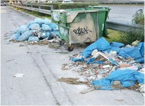 Στο κάδο απορριμμάτων για τα σκουπίδια του σχολείου ένθεν και ένθεν αντικρίζεις, μέρες τώρα, σωρούς οικοδομικών υλικών, μπάζα που έχει αφήσει εκεί κάποιος αγαπητός μας συμπολίτης .
