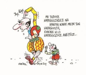 Η λεπτή ειρωνεία, η θλιμμένη παρατήρηση, το δοξαστικό στα ανθρώπινα, στη χαρά και την τρέλα της ζωής, στο βάρος της Ιστορίας και στην αβάσταχτη ελαφρότητα της απουσίας της, συνθέτουν το ψηφιδωτό της ιδιοπροσωπίας ενός λαού που περνάει σε διάφορες εκδοχές της εθνικής του ταυτότητας, με διαφορετικούς και όμοιους πολιτικούς προσδιορισμούς, ένα παλίμψηστο που κρύβει κάτω απ’ την επιφάνειά του αλήθειες αυτογνωσίας και ζωτικούς μύθους αυτής της ζωφόρου των Ελλήνων που τρέχει μέσα στον χρόνο, άλλοτε σαν λιτανεία, άλλοτε σαν καραβάνι, άλλοτε σαν φάλαγγα, πότε προς τα Ελευσίνια Μυστήρια, πότε ακολουθώντας τον Επιτάφιο, σ’ αυτό το πανηγύρι της δόξας και της καταισχύνης, του θρήνου και του αίνου, Μάξιμος ο Γραικός και Ελ Γκραίκο, είμαστε ωραίο τροπάριο, σύντροφοι κυρίες και κύριοι, ιδίως τώρα που ξαναγίναμε ραγιάδες και το παίζουμε ευρωπαίοι, ήγουν συνέταιροι με τους βιαστές μας.