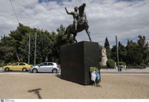 Ούτε 15 ημέρες δεν πρόλαβαν να συμπληρωθούν από τα αποκαλυπτήρια του αγάλματος του Μεγάλου Αλεξάνδρου στη συμβολή των οδών Βασιλίσσης Όλγας και Αμαλίας και έπεσε θύμα βανδάλων.