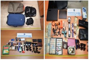 Από τις έρευνες στις οικίες τους, βρέθηκαν και κατασχέθηκαν πλήθος κλοπιμαίων (γυαλιά ηλίου, ρολόγια χειρός, ηλεκτρονικές συσκευές, κινητά τηλέφωνα, φωτογραφική μηχανή καθώς και άλλα αντικείμενα) και διαρρηκτικά εργαλεία.