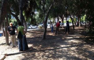 Συνάντηση στο πάρκο της Πικροδάφνης, μπροστά από την παιδική χαρά που βρίσκεται στη συμβολή των οδών Τζαβέλλα και Βουλιαγμένης στην Ηλιούπολη.