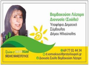 Ζητώ την στήριξη σας ώστε δίπλα στο δήμαρχο μας να προσφέρω στην παιδεία, στην διαρκή καλυτέρευση της καθημερινότητας και στην ανάδειξη της πολυπολιτισμικότητας της Ηλιούπολης με προτεραιότητα την συμμετοχή όλων & κυρίως των νέων μας, που αποτελούν την δύναμη προόδου για τον τόπο μας & το μέλλον του.