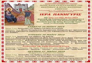 Την 25η & 26η Μαΐου 2019, Κυριακή της Σαμαρείτιδος Εορτή της Αγίας Φωτεινής πανηγυρίζει μεγαλοπρεπώς ο Ιερός Ναός του Ευαγγελισμού της Θεοτόκου και Αγίας Φωτεινής Υμηττού