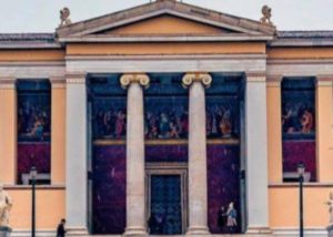 Στην πρόσοψη του κτιρίου έχει στηθεί ένα τεράστιο γιγαντοπανό με μήνυμα κατά της κατάργησης του ασύλου.
