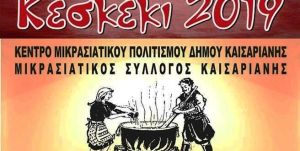 Το Κέντρο Μικρασιατικού Πολιτισμού Δήμου Καισαριανής σε συνεργασία με τον Μικρασιατικό Σύλλογο Καισαριανής, αναβιώνουν στην πόλη μας το παραδοσιακό έθιμο «Κεσκέκι» με μουσική και χορό από την Μικρά Ασία, εκδήλωση τιμής και μνήμης στο Μικρασιατικό Ελληνισμό.