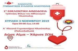 Ο ΓΥΜΝΑΣΤΙΚΟΣ ΣΥΛΛΟΓΟΣ ΗΛΙΟΥΠΟΛΗΣ διοργανώνει την 1η Εθελοντική Αιμοδοσία