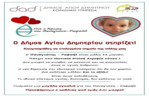 Σε επιλεγμένα σημεία της πόλης, έχουν τοποθετηθεί ειδικοί κουμπαράδες, στους οποίους μπορούμε όλες και όλοι να συνεισφέρουμε στην πανελλαδική προσπάθεια για τη θεραπεία του μόλις 18 μηνών Παναγιώτη – Ραφαήλ, που πάσχει από νωτιαία μυϊκή ατροφία τύπου 1.