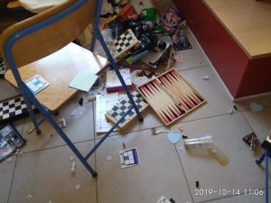 Δυστυχώς άγνωστοι θεώρησαν το χώρο του σχολείου χώρο προσωπικής διασκέδασης και χωρίς κανένα σεβασμό απέναντι στα παιδιά που φοιτούν, έσπασαν λάμπες, χάλασαν πρίζες και τέλος πέταξαν σκουπίδια μέσα από το παράθυρο της βιβλιοθήκης του σχολείου μας, βανδαλίζοντας τη.