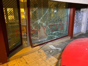 Η εισβολή στο κατάστημα έγινε στις 3:20 τα ξημερώματα, με τους δράστες να σπάνε την τζαμαρία και την είσοδο του κοσμηματοπωλείου, με το κλεμμένο αυτοκίνητο.
