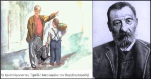 Εκεί, καθώς εστράφη να εμβή εις το καπηλείον, βλέπει εν παιδίον της αγοράς, με μίαν κοφίναν επ’ ώμων, ήτις εφαίνετο ακριβώς να περικλείη ένα γάλον, αγριολάχανα, πορτοκάλια, ίσως και βούτυρον και άλλα καλά πράγματα. Το παιδίον εκοίταζε δεξιά και αριστερά και εφαίνετο να αναζητή οικίαν τινά. Ήτο έτοιμον να εισέλθη εις το καπηλείον δια να ερωτήση.