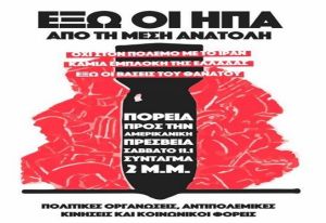 Στην κατεύθυνση αυτή θα προχωρήσουμε σε συλλαλητήριο το Σάββατο 11 Γενάρη, 2 μ.μ. Σύνταγμα και πορεία προς την Αμερικανική Πρεσβεία.