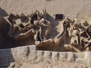 Η μαζική ταφή αποτελείται από 79 σκελετούς σε τρεις σειρές. Για την προστασία τους χρησιμοποιήθηκε μία τέντα η οποία θα είχε διάρκεια ενός χρόνου, αλλά παραμένει να καλύπτει το σκάμμα ως σήμερα.