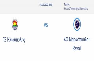 Το Σάββατο 1 Φεβρουαρίου 2020 και ώρα 06.00 μ.μ.στο Α. Κλειστό Ηλιούπολης, η γυναικεία ομάδα volley του Γ.Σ.Ηλιούπολης αντιμετωπίζει την ομάδα του Α.Ο. Μαρκοπούλου Revoil στα πλαίσια της 14ης αγωνιστικής - Volley League Α1 Γυναικών.