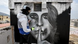 Με αφορμή τη δραματική αύξηση των περιστατικών ενδοοικογενειακής βίας και πιο συγκεκριμένα της γυναικείας κακοποίησης, εν μέσω καραντίνας, ο έφηβος ζωγράφισε ένα πρόσωπο γυναίκας με τραύματα, η οποία κρατά τη σιωπή της και δεν μιλά για τη βία που δέχεται.